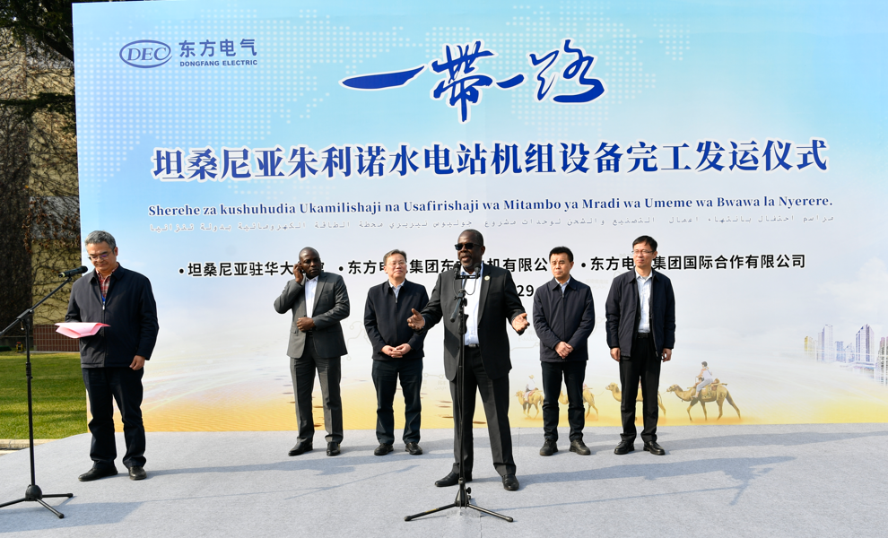 12月29日,壹号娱乐-com - NG大舞台,有梦你就来电机举办坦桑尼亚朱利诺水电站机组设备完工发运仪式。壹号娱乐-com - NG大舞台,有梦你就来电机研制供货的朱利诺项目9号机定子发运,标志着朱利诺水电站机组主设备全部完工。坦桑尼亚驻华大使Khamis Mussa Omar、驻华公使Alphonce Martin Mwakasege;壹号娱乐-com - NG大舞台,有梦你就来股份有限公司副总裁,壹号娱乐-com - NG大舞台,有梦你就来电机党委书记、董事长王军,党委副书记、总经理鄢志勇;壹号娱乐-com - NG大舞台,有梦你就来国际副总经理孙震平出席发运仪式。壹号娱乐-com - NG大舞台,有梦你就来电机副总经理范先忠主持发运仪式。