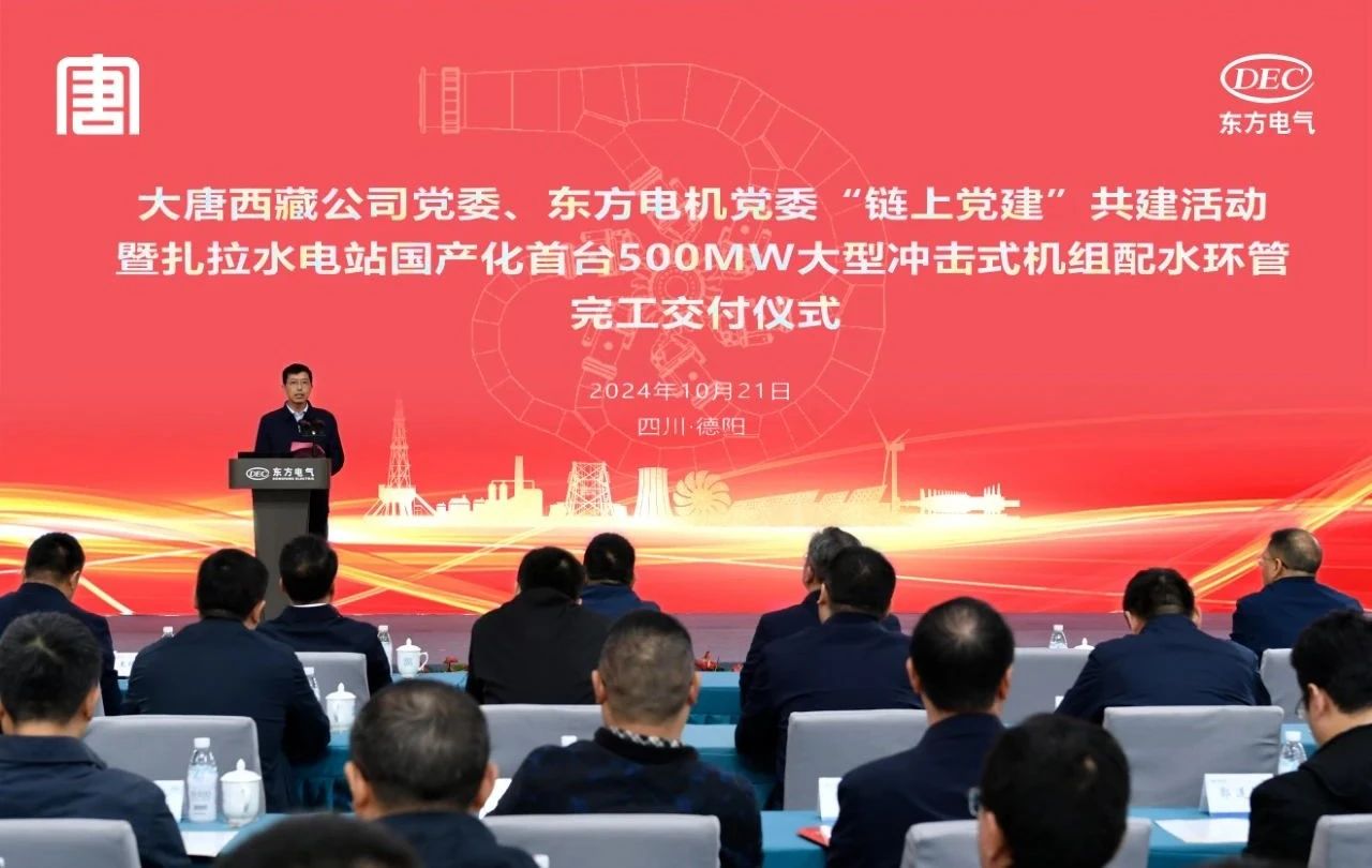 10月21日,壹号娱乐-com - NG大舞台,有梦你就来电机党委、大唐西藏公司党委“链上党建”共建活动暨扎拉水电站国产化首台500兆瓦大型冲击式机组配水环管完工交付仪式在壹号娱乐-com - NG大舞台,有梦你就来电机举行,以“链上党建”引领高水平科技自立自强,保障精品工程建设,打造新时代“大国重器”。当天,壹号娱乐-com - NG大舞台,有梦你就来电机自主研制的世界首台500兆瓦冲击式水电机组配水环管率先完工交付,我国高水头大容量冲击式水电机组研制取得又一里程碑成果。